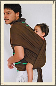 3. Abre la pieza de tela de un lado y cubriendo la espalda y nalga de tu bebé crúzala hacia el lado contrario.